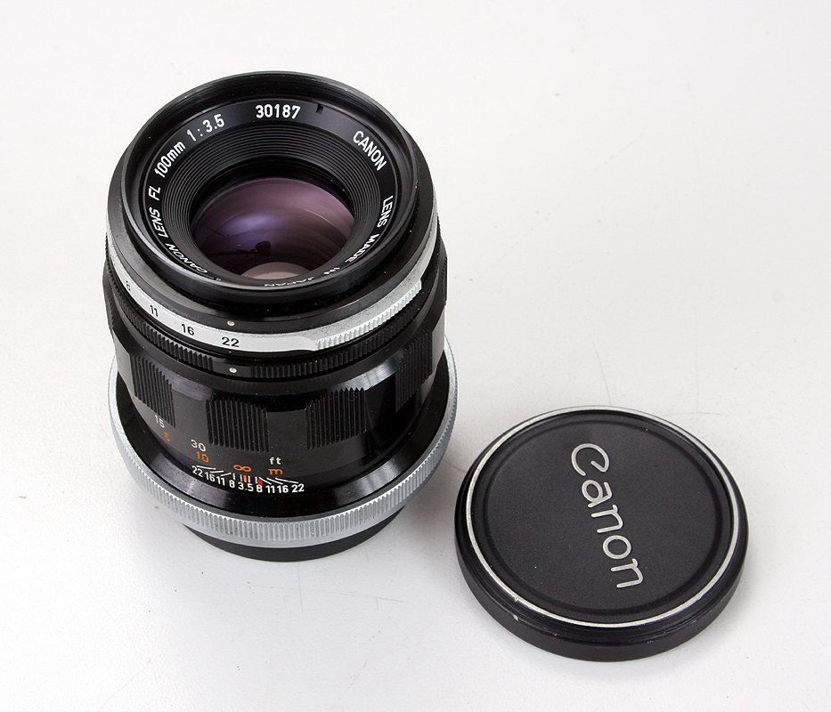 The 100/3.5 Canon FL was continuation of the 100/3.5 Canon R, except it had an auto diaphragm. It