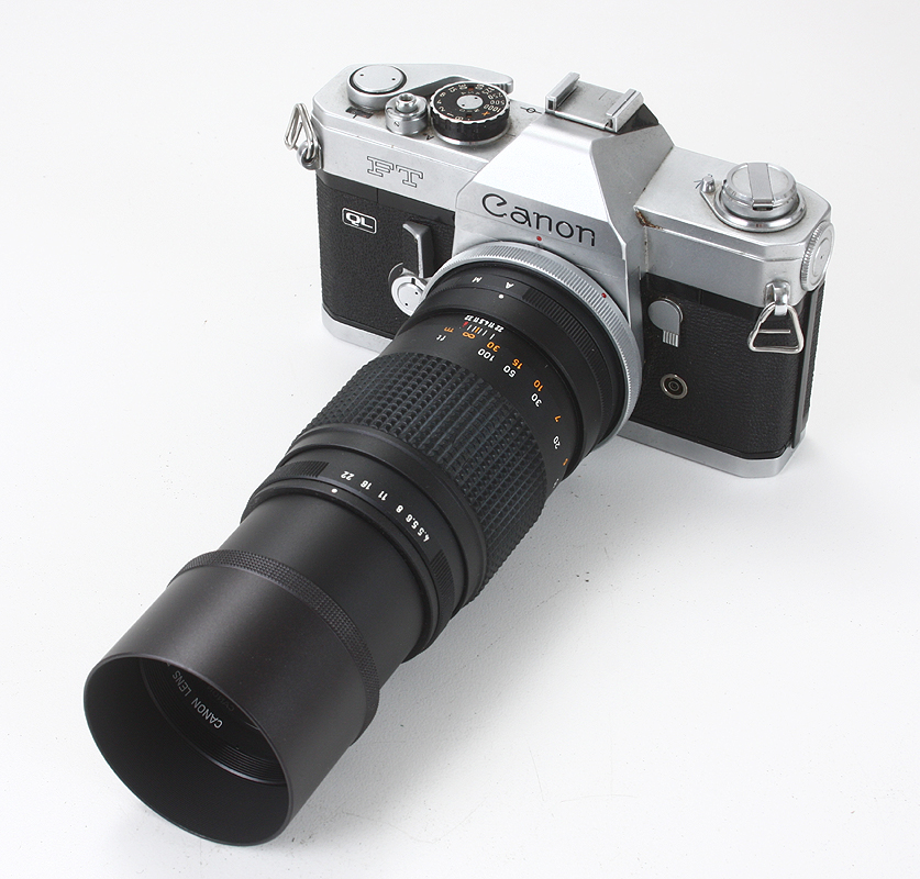 The 200/4.5 Canon FL was Canon's budget long lens. It had the newer styling with a rubber grip on the