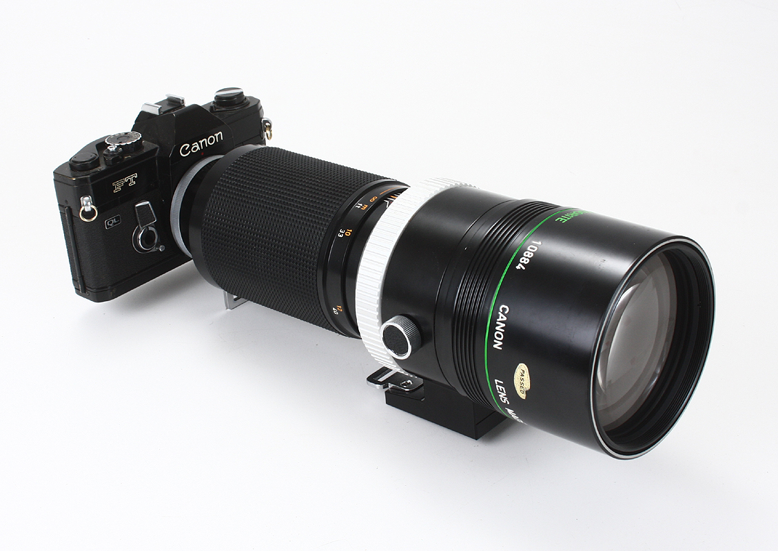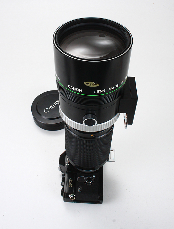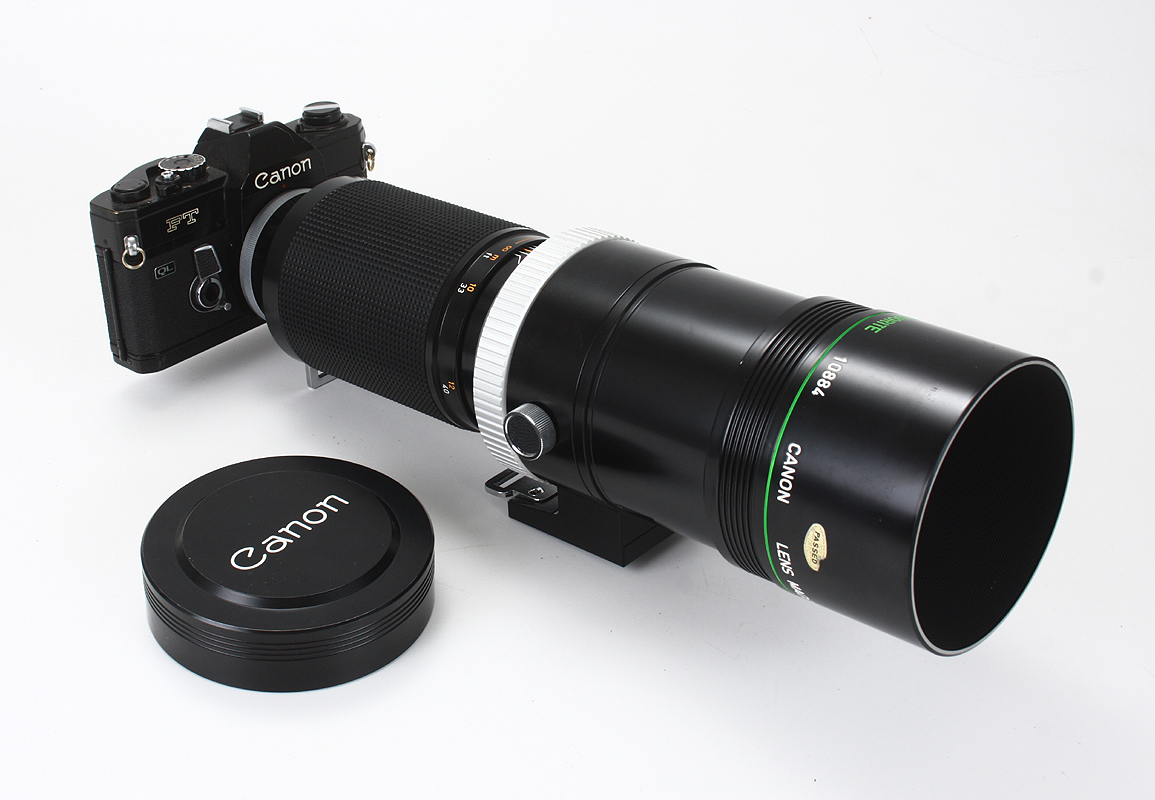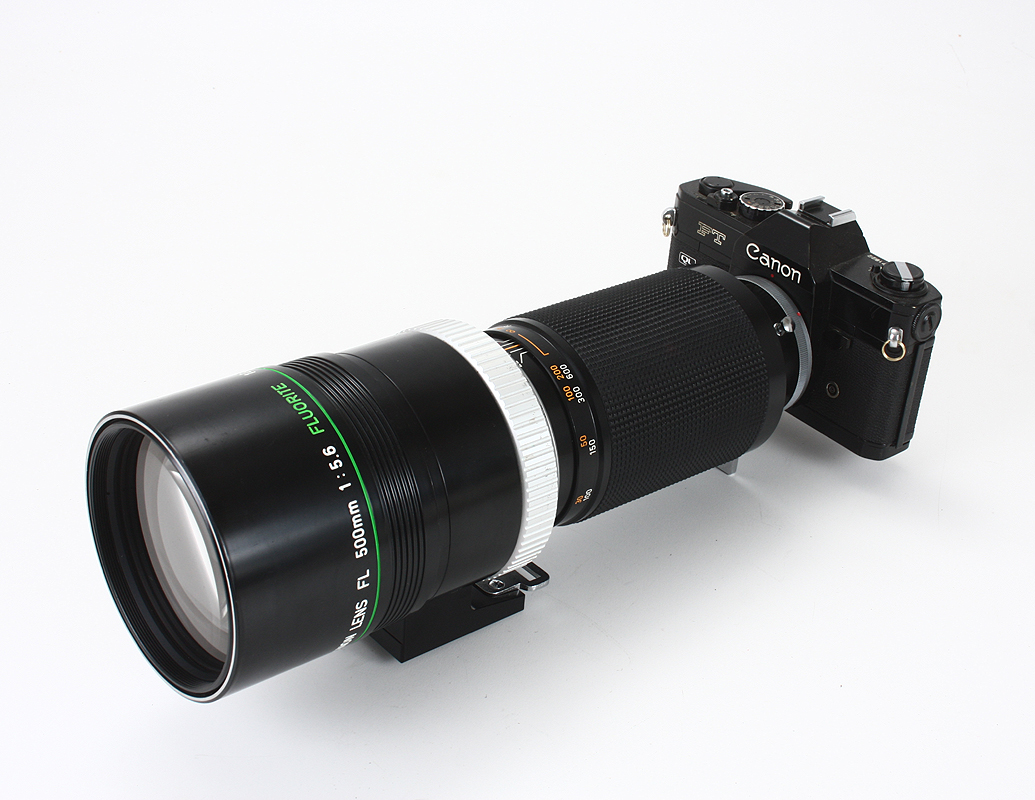 The 500/5.6 Canon FL-F on a black Canon FT.
