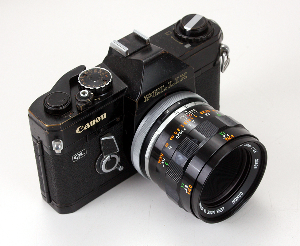 The lens mounted on a black Pellix QL.