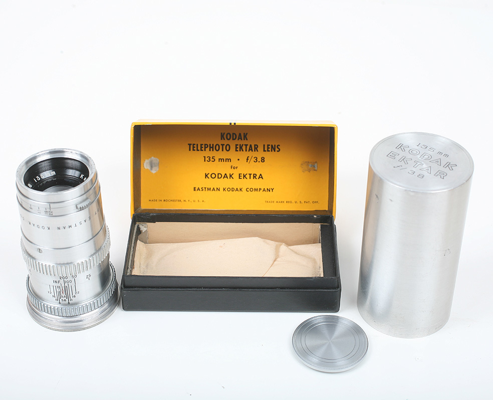 The 135/3.8 Ektar, with screw in cap, metal can and box.