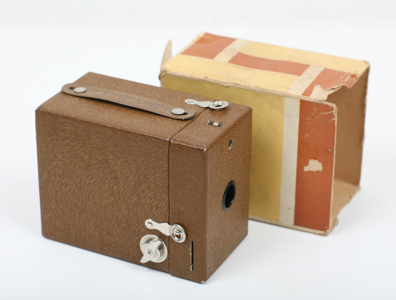 The No.2 Kodak Rainbow Hawk-Eye Model C in brown, with box.