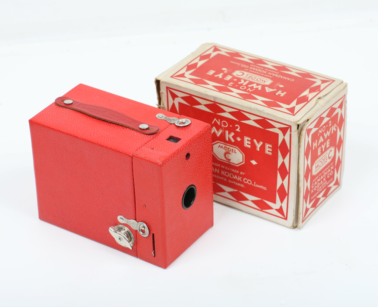 The Canadian No.2 Kodak Rainbow Hawk-Eye Model C in red, with box.