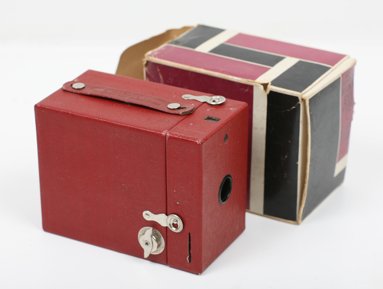 The No.2 Kodak Rainbow Hawk-Eye Model C in red, with box. The color is a bit
