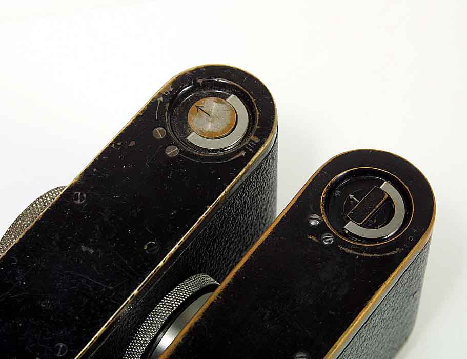 A comparison of the differences in engraving on the lenses, the early style on the left.