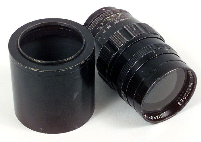 The early 250/4 Nikkor with manual diaphragm and it's shade.