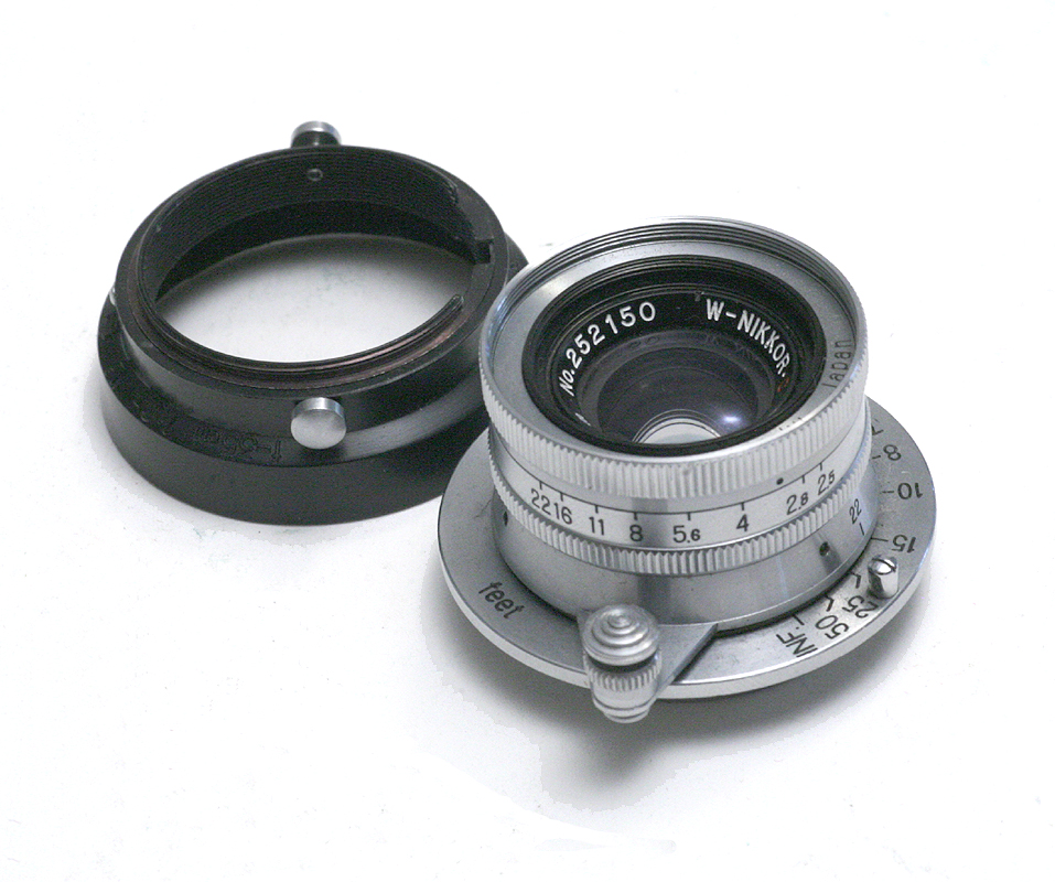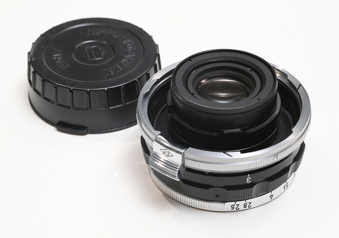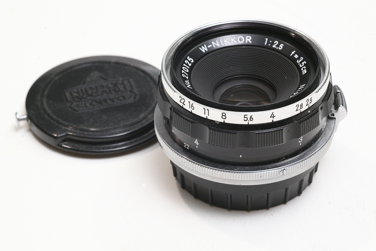 A very small number of these lenses were sold in the 35/1.8 style, which has the f/numbers engraved around the outside of the chrome ring on the very end of the lens.