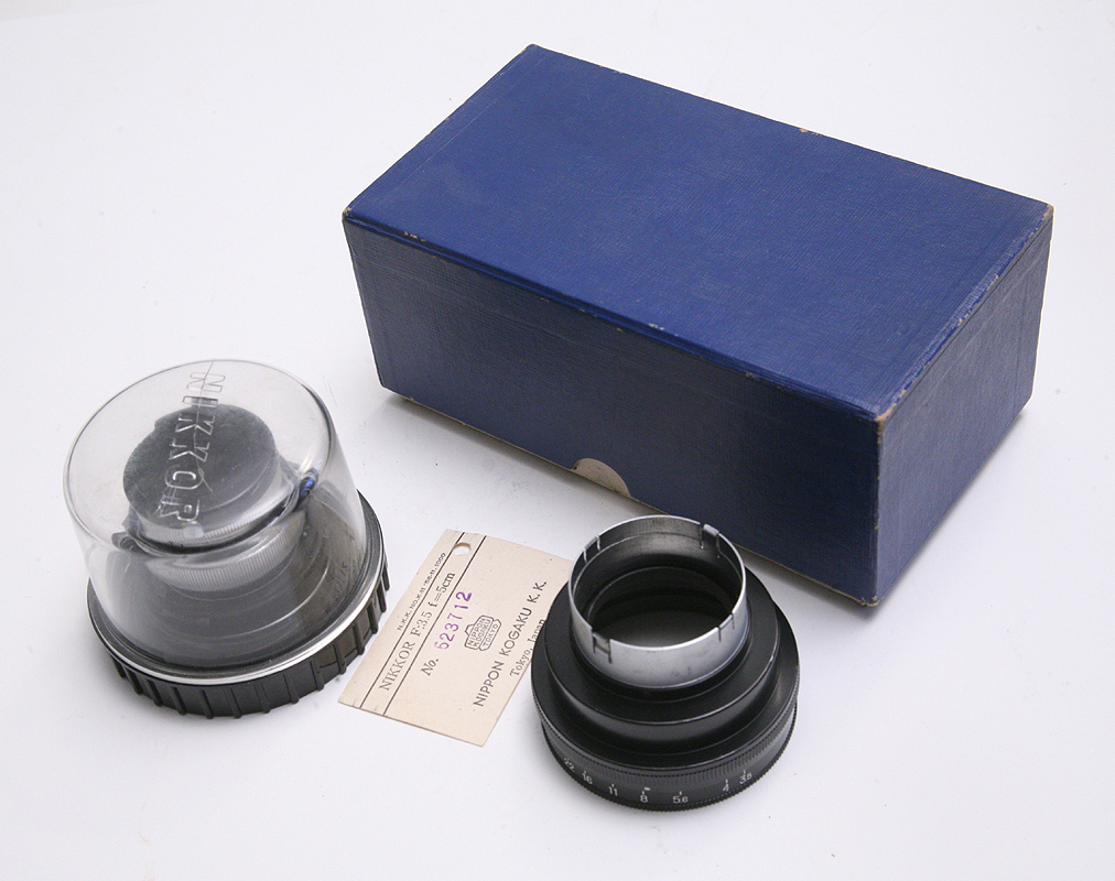 A specialty lens, and the exact opposite of the 50/1.1 introduced in the same year, it was sold in small quantities. It wasn't until the same lens became available for the Nikon F that it met large-scale success. About 1500 were sold, in both Nikon mount and Leica screwmount combined. This was the sharpest lens ever made for the rangefinder Nikons, and it exceeded the resolving capabilities of the film available at that time.