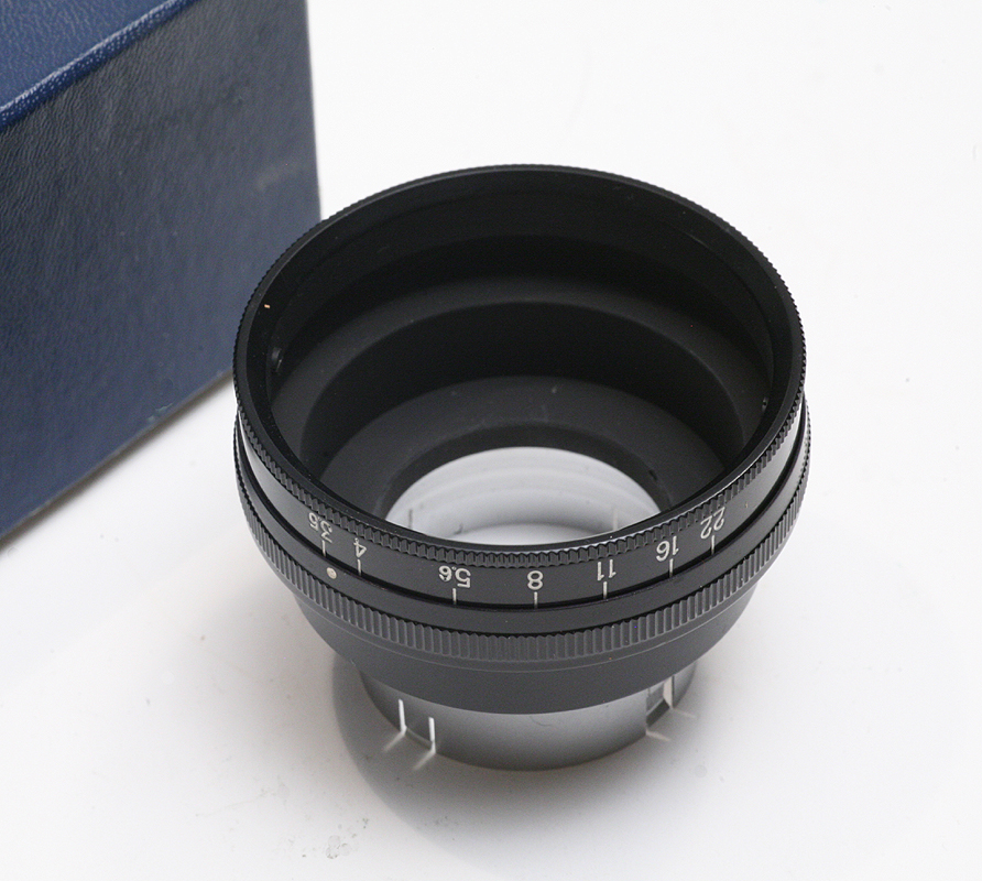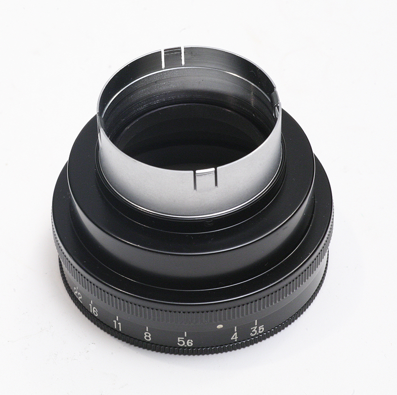 In an era when lens speed was the greatest measure of merit, Nippon Kogaku introduced a 50/3.5 lens that cost $199.50, $30 more than the 50/1.4. The lens was a special purpose lens, both flat field and highly color corrected. It focused in normal mode from infinity down to 3 feet. It could be collapsed, allowing focus down to 1.5 feet. It was designed to provide optimum sharpness at a 1:12 ratio.