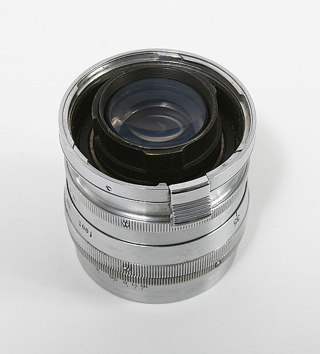 A chrome 85/2 Nikkor in Leica thread mount.Note that the shade is reversed on the barrel for