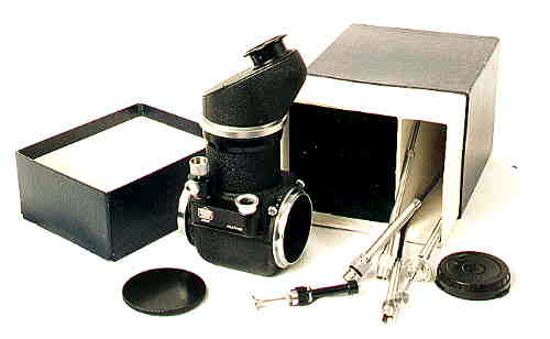 provided with a 45 degree prism finder, a cable to fire the camera after the mirror had swung up out of