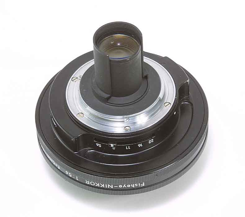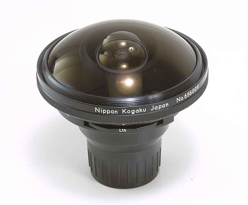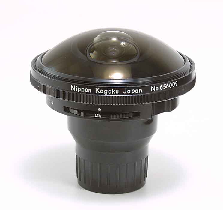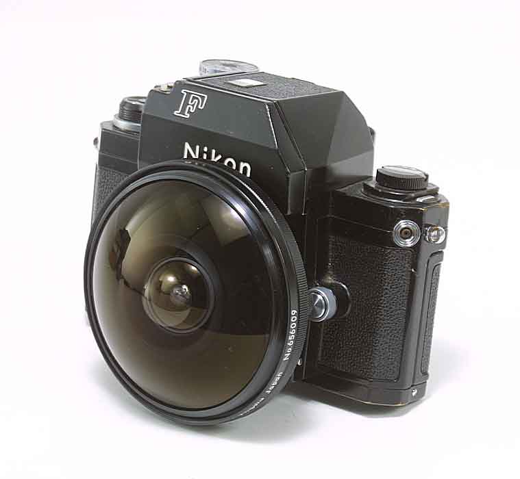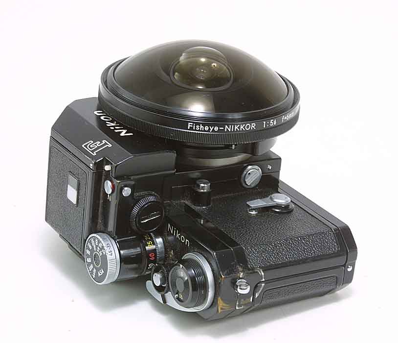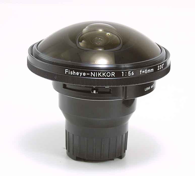 The 6/5.6 Fish-eye Nikkor mounted on a Nikon F.