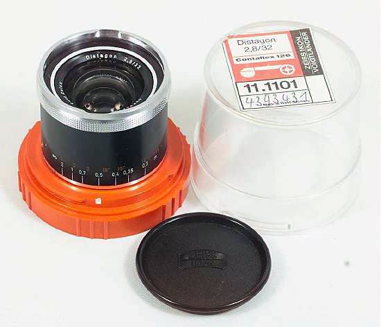 The 32/2.8 Distagon only fits the Contaflex 126 camera. It is a seven element design, and uses B50