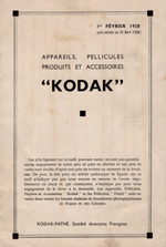 | Kodak Pathe Camera Sales Brochure April 1938, in French with May 1938