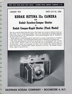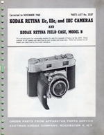 | Kodak Parts List for Retina IIc, IIIc and IIIC, Nov 1960 |