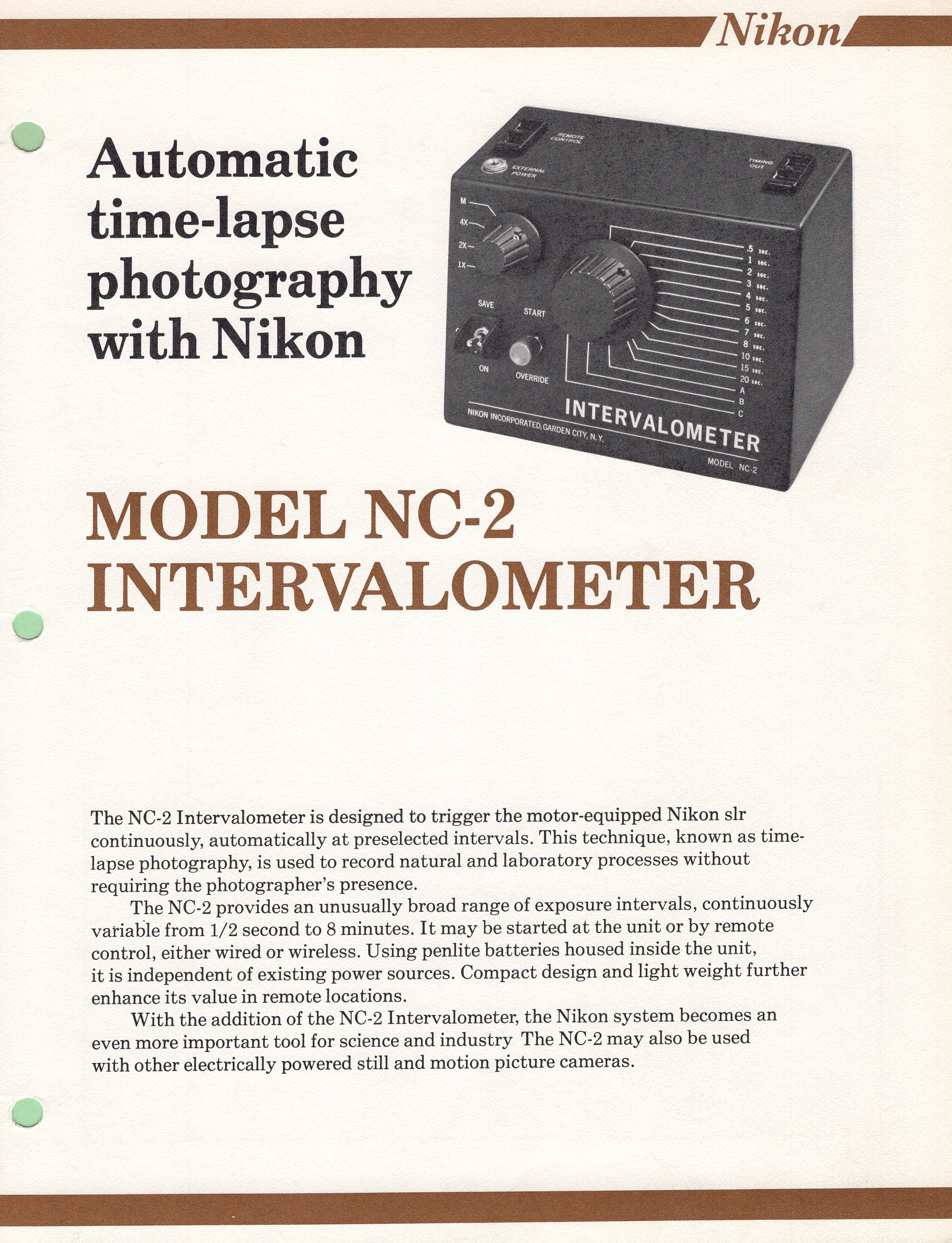 | Nikon F Model NC-2 Intervalometer Dealer Notebook Sheet NK-