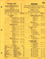 | Nikon Dealer Notebook, 1965-66, camera and lens sections
