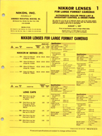 | Nikon Large Format Nikkor Dealer Price List Aug