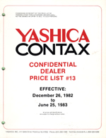 | Contax Yashica Price List #13 Dec 1982-June
