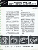 | Kodak Medalist Accessory Back Service Bulletin 1-2370-