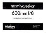 | Mamiya Universal Black Instruction Book PSN-K 20 82F 90 |